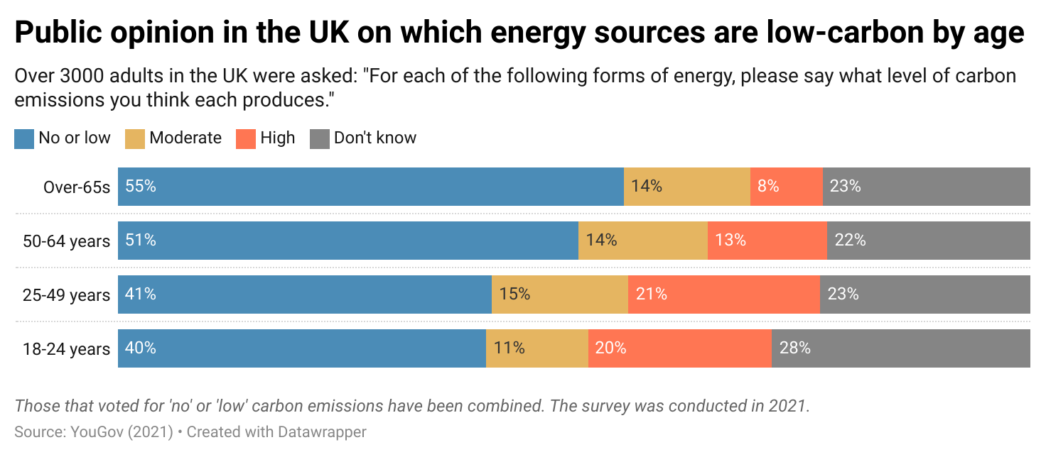 55% of over-65s said it was low-carbon, compared to 40% of 18-to-24-year-olds.